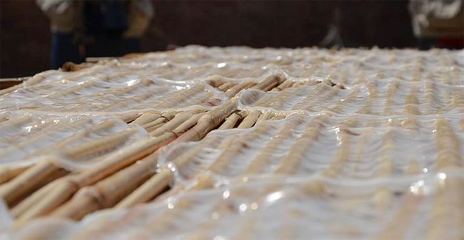 汝州粉皮,自带禅意。其味道虽然清淡,但除了绿色、健康、养生等,还能给人带来禅意与远方的想象。 在全球宣扬素食主义的潮流下,很多地方流行起“吃素”来,时代进步,素食强调健康、有机,渐渐成为新的饮食时尚。 汝州粉皮是“老汝州”的传统特产,始创于清道光二十年间的城关西街水坑沿田家有家,距今已有一百六十多年的历史了。汝州粉皮以优质绿豆为原料,纯手工艺水磨绿豆淀粉精制而成,工艺考究,味道鲜美。每张直径三十公分,每荮三十张,约半斤重。它性平且凉,食之具有清热解毒、益气明目之奇效。一百多年来,汝州粉皮作为汝州传统特产的“新三宝”(粉皮、粉条、粉丝)之冠而名闻遐尔,并且飘洋过海,登上了异国它乡的宴席,“中国汝州”的名字在他们品嚼这道美味佳肴的同时,也被镌刻在了心里。